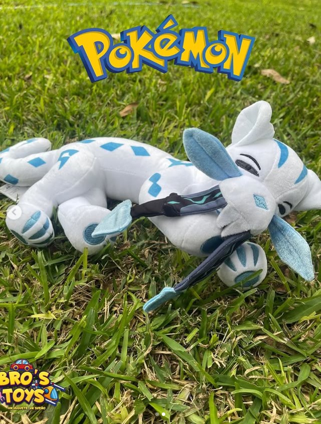 El peluche está elaborado con materiales suaves y costuras resistentes que garantizan durabilidad y una buena conservación de su forma. Su diseño lo convierte en una pieza ideal tanto para exhibición dentro de una colección como para quienes buscan una versión diferente y más apacible de un Pokémon legendario.