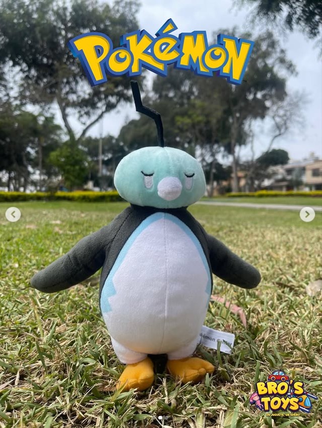 El peluche de Eiscue representa a uno de los Pokémon más originales introducidos en la octava generación. Proveniente de la región de Galar, Eiscue es un Pokémon de tipo Hielo conocido por su particular característica: protege su cabeza con un bloque de hielo que le sirve como defensa natural.