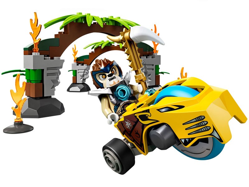 ¡Conviértete en un maestro del control del Speedor en las puertas de la selva! Pon a Lennox en el Speedor león, tira de la cuerda y pon tus habilidades a prueba a traspasando a máxima velocidad las puertas y obtén el CHI! Incluye minifigura, 2 armas, Speedor, cuerda propulsora, 2 conos de fuego, 6 CHI y 5 cartas de juego. ¡Pon a prueba tu puntería y habilidades con este emocionante juego para 1 o más jugadores!