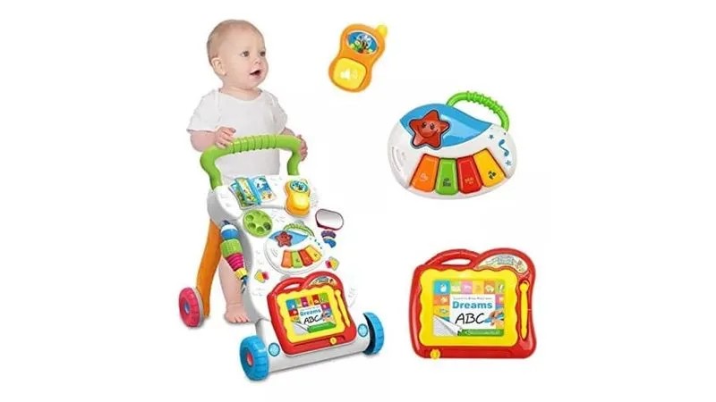 Haz que los primeros pasos de tu bebé estén llenos de música, color y aprendizaje con este práctico caminador y andador musical 2 en 1. Diseñado para estimular el desarrollo motriz y sensorial, ofrece estabilidad, seguridad y una experiencia de juego interactiva que acompaña al bebé en su crecimiento.