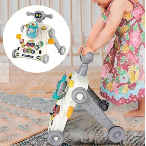 Caminador / andador 2 en 1 de robot, tu bebe va a aprender a dar sus primero pasos con este caminador que tambien tiene un centro de mesa para que tu bebe se pueda divertir mientras desarrolla sus músculos y da los primeros pasos. Uso apartir de 6 meses a mas, con sonido y luces
