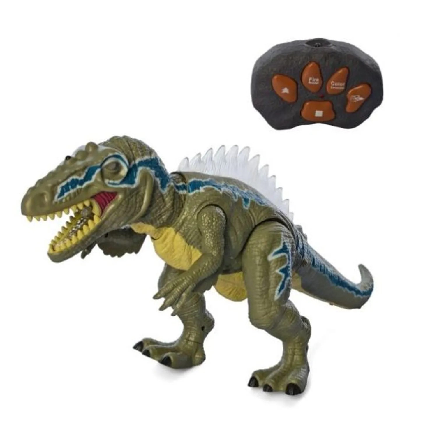 Gracias a su control remoto inalámbrico, podrás dirigirlo hacia donde quieras: camina, gira, mueve la cabeza, abre la boca y emite rugidos que hacen temblar la tierra. Además, sus luces LED en los ojos y su piel texturizada lo hacen aún más impactante durante el juego, especialmente en la oscuridad.