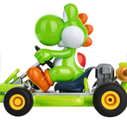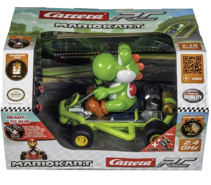 Yoshi Mario Kart - Carro Control Remoto Envíe a su hijo a una aventura vertiginosa llena de diversión con Jakks Pacific World de Nintendo Mario Kart Yoshi Mini RC Racer. Transforma las ruedas en modo antigravedad para derrapar por las esquinas y realizar trucos especiales. Este corredor Yoshi de Mario Kart RC presenta gráficos detallados y colores fieles a los personajes. Te da acceso a 2,4 GHz de potencia y una dirección completamente funcional. El paquete viene con un control remoto y 12 AA y una batería C. ¿Alguna vez se preguntó qué pasaría si su Yoshi Kart RC fuera alcanzado por un rayo? ¡Se encogería por supuesto! El mundo de Nintendo se complace en presentarles el nuevo Yoshi Mini RC Racer. Haz que Luigi corra en modo estándar o cambia al modo antigravedad para realizar derrapes y trucos con solo presionar un botón. ¡Ahora, con un rendimiento adicional, incluso puedes hacer caballitos y hacer giros de 360! ¿Con hasta 100? Alcance ¡este RC puede recorrer la distancia! * No uses World of Nintendo Anti-Grav RC en una tormenta eléctrica; un rayo real no hará que el automóvil se reduzca a una versión mini, ¡aunque eso sería increíble!