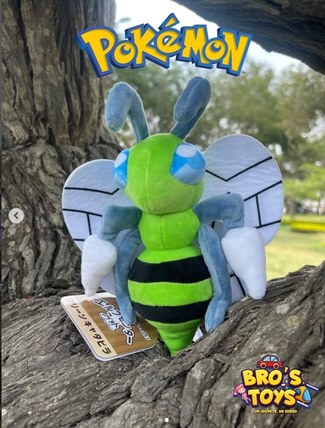 El peluche reproduce fielmente sus rasgos más característicos, incluyendo la forma de su cuerpo, sus alas extendidas y la estructura de sus aguijones, manteniendo la coloración especial de la versión Shiny. Está elaborado con materiales suaves al tacto y costuras resistentes que garantizan durabilidad y buena conservación de su forma.