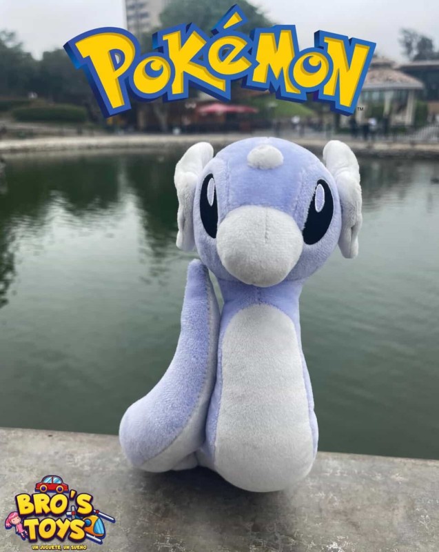 Dratini, el Pokémon tipo Dragón de la primera generación, llega en forma de este adorable peluche oficial. Conocido como el “Pokémon Dragón”, Dratini habita en aguas profundas y se dice que crece rápidamente al mudar su piel una y otra vez. Este peluche captura a la perfección su apariencia original: su cuerpo serpentino azul con vientre blanco, sus grandes ojos expresivos y las aletas laterales que lo distinguen.