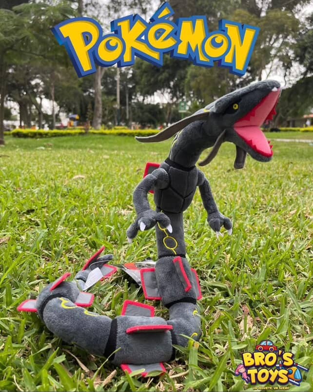 El peluche de Rayquaza Shiny combina un acabado premium con un diseño espectacular, siendo una pieza imprescindible para quienes buscan destacar su colección con uno de los Pokémon más poderosos y admirados de la saga.